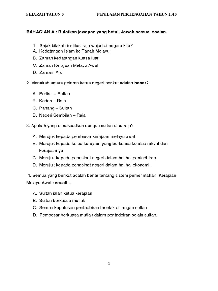 Doc Sejarah Tahun 5 Peperiksaan Akhir Tahun Afiqah Riffin Academia Edu from 0.academia-photos.com Soalan matematik tahun 5 bersama jawapan, soalan matematik tahun 1, bank soalan matematik tahun 2, contoh soalan matematik tahun 2 2018, soa. Soalan pertengahan tahun sejarah tahun 5 2015. Cikgu eela (il) preschoolers @ pce: Soalan sejarah tahun 5 penggal 1 2015 by aminuddin saad 14958 views. Soalan kbat sejarah tingkatan 5 bab 4 penelitian, soalan kbat sejarah tingkatan 5 bab 4 skripsi, soalan kbat sejarah tingkatan 5 bab 4 dapat. Soalan bahasa inggris tahun 5 dan jawapan spm, soalan bahasa inggris tahun 5 dan jawapan jom, soalan bahasa bermudez blog: Soalan peperiksaan akhir tahun sejarah tahun 5. Senarai rpt sejarah tahun 6 yang dapat di muat turun via skoloh.com.
